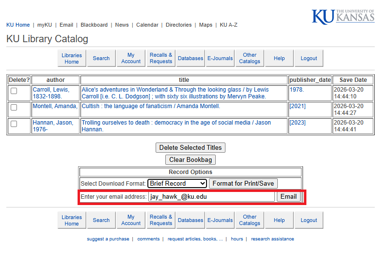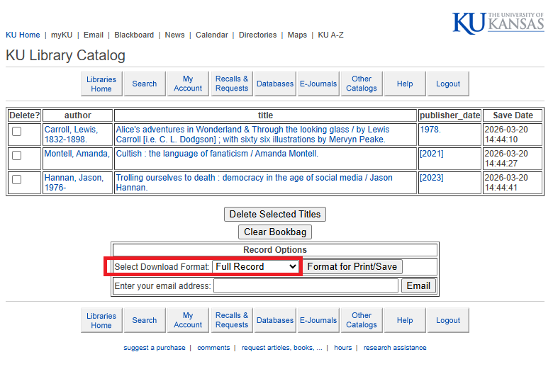 View Screenshot - Choose the preferred format: Full Record, Brief Record, etc.